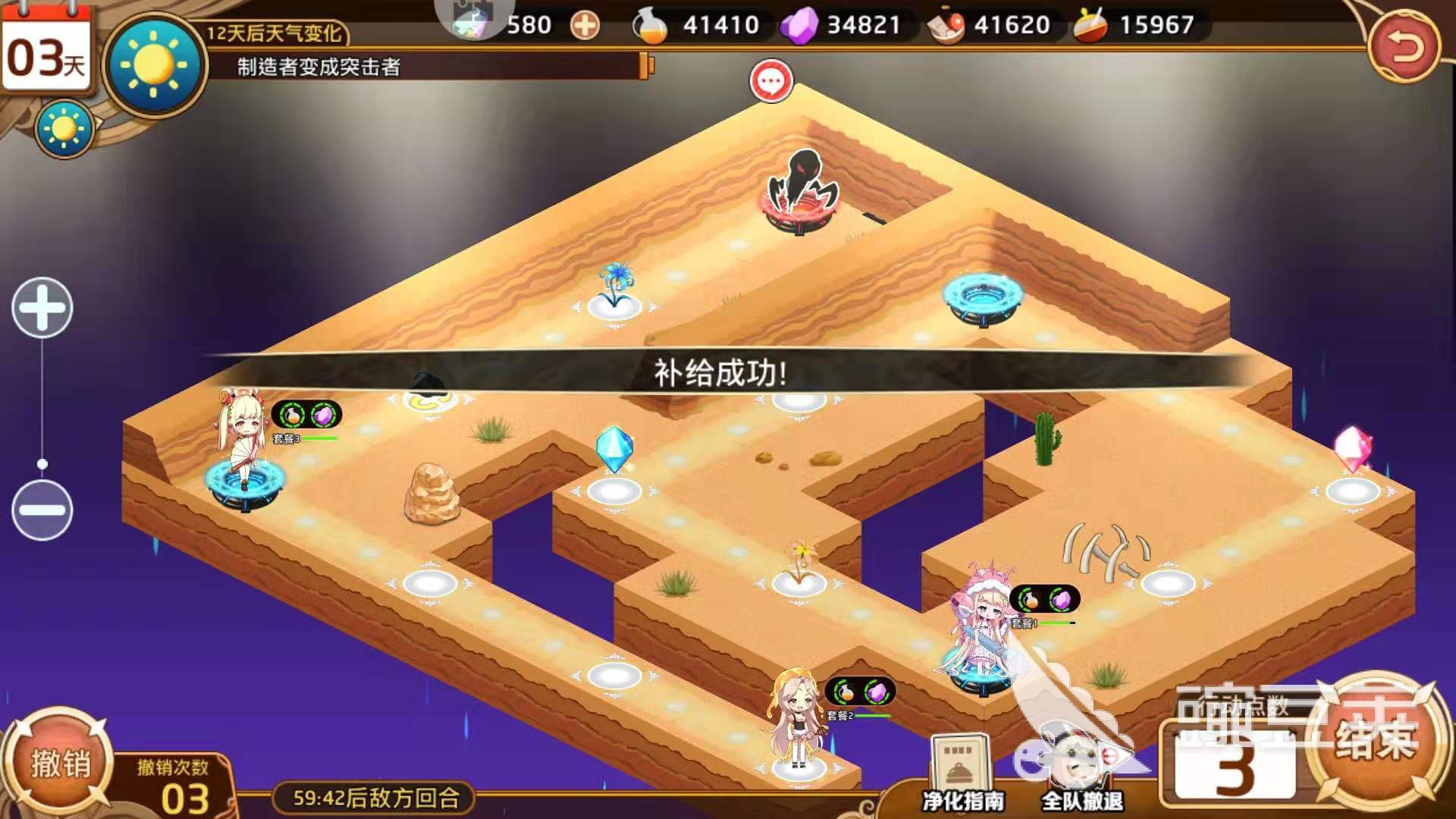 最后会来到一个选择点,第一天我们就只奔boss,可以再召唤一支队伍,而净化制造者的目标也达到了。